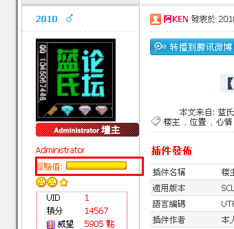 [版型教學] 看到有人找這個代碼---個人信息經驗條