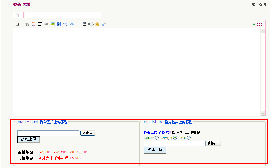 4. <FIELDSET class=fieldset><LEGEND>ImageShack 免費圖片上傳服務</LEGEND>
